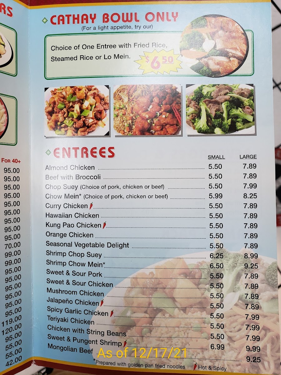 Introducing the Menu at Cathay Chinese Food